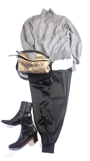 付けてみたらこんな感じ。薄いリブタートルを着てつけてみました。