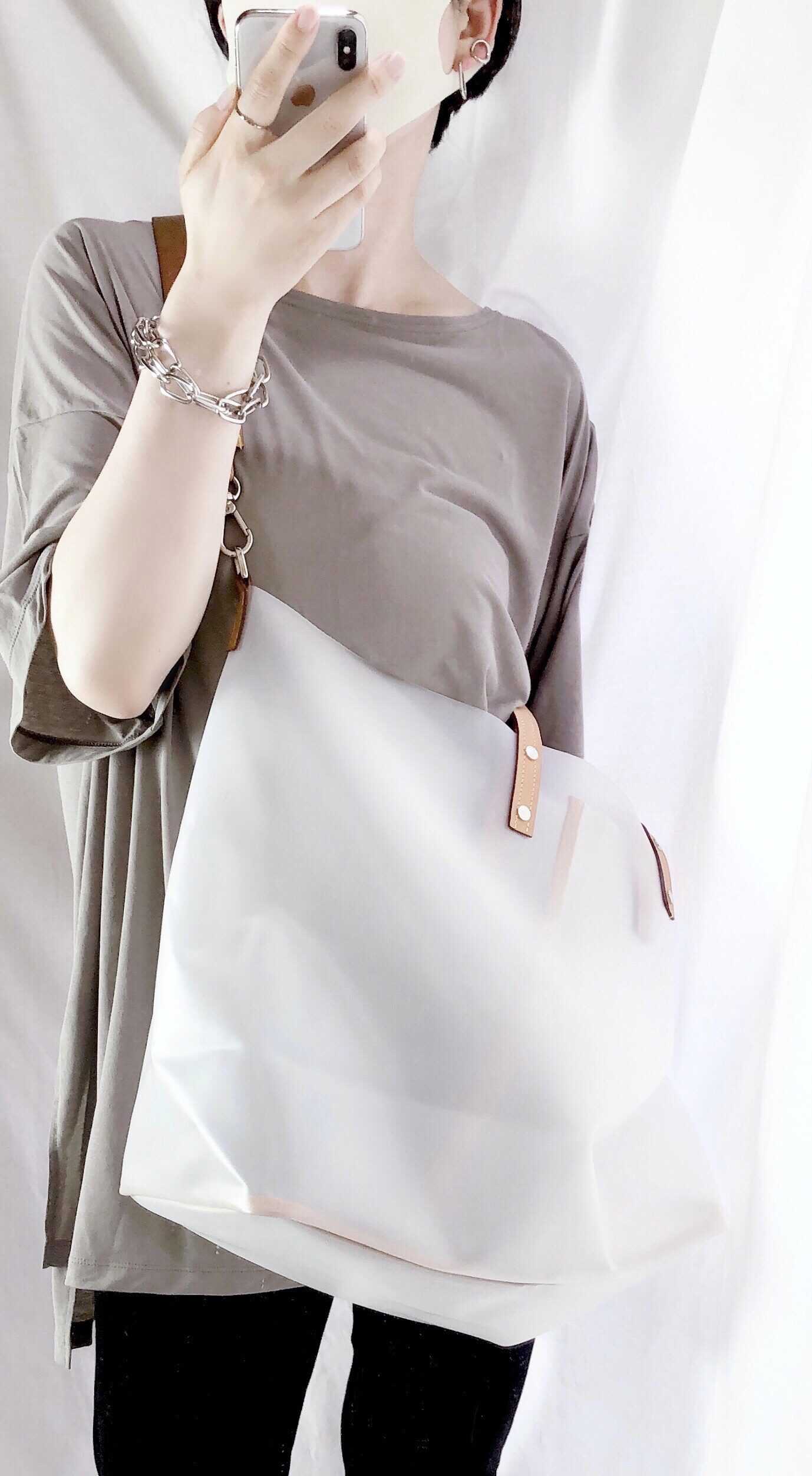 ベージュのタンクに合わせてみるとこんな雰囲気に。