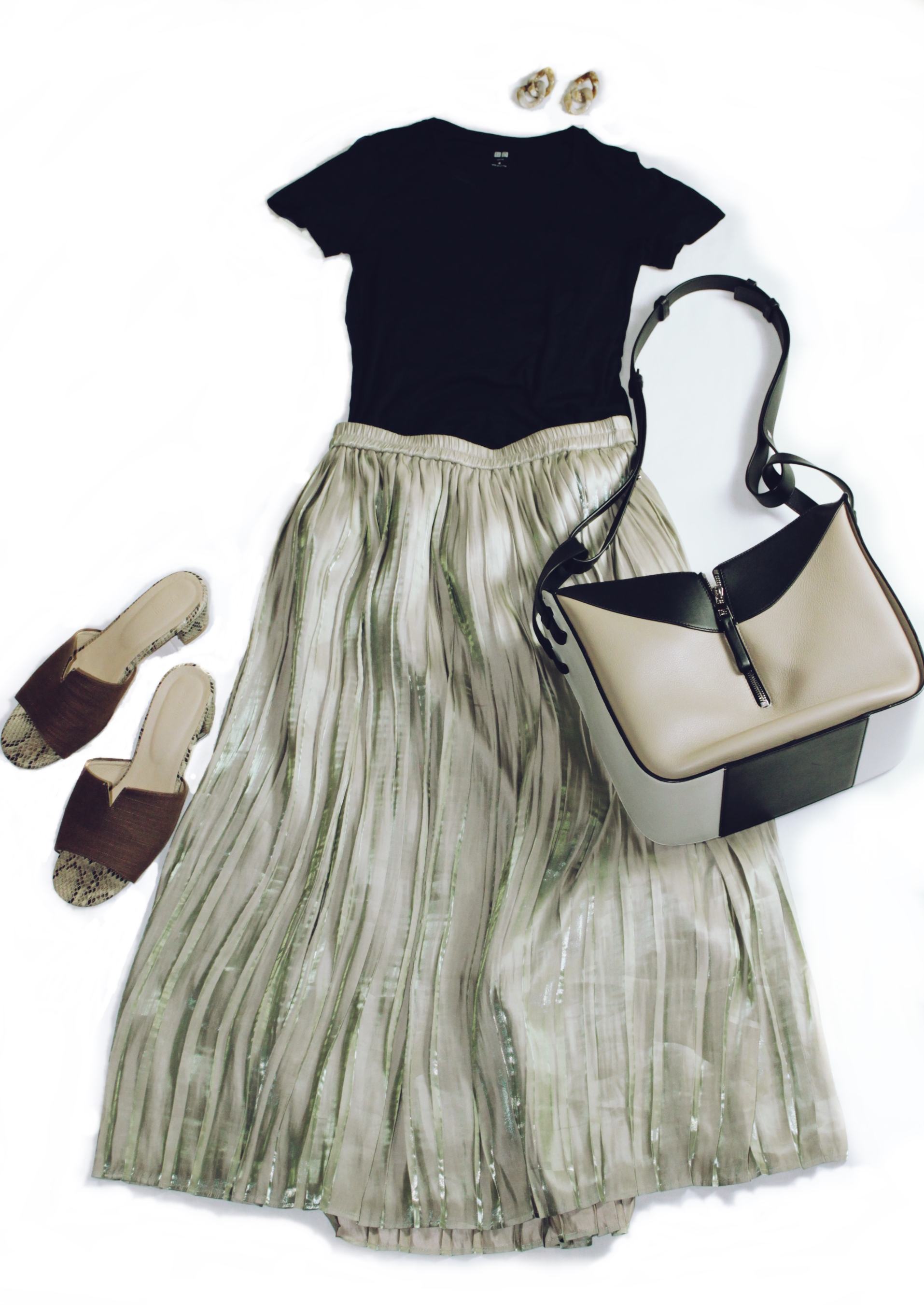 今回は大好きなCOOMBの玉虫色なベージュプリーツスカートを合わせてみたわけですが、