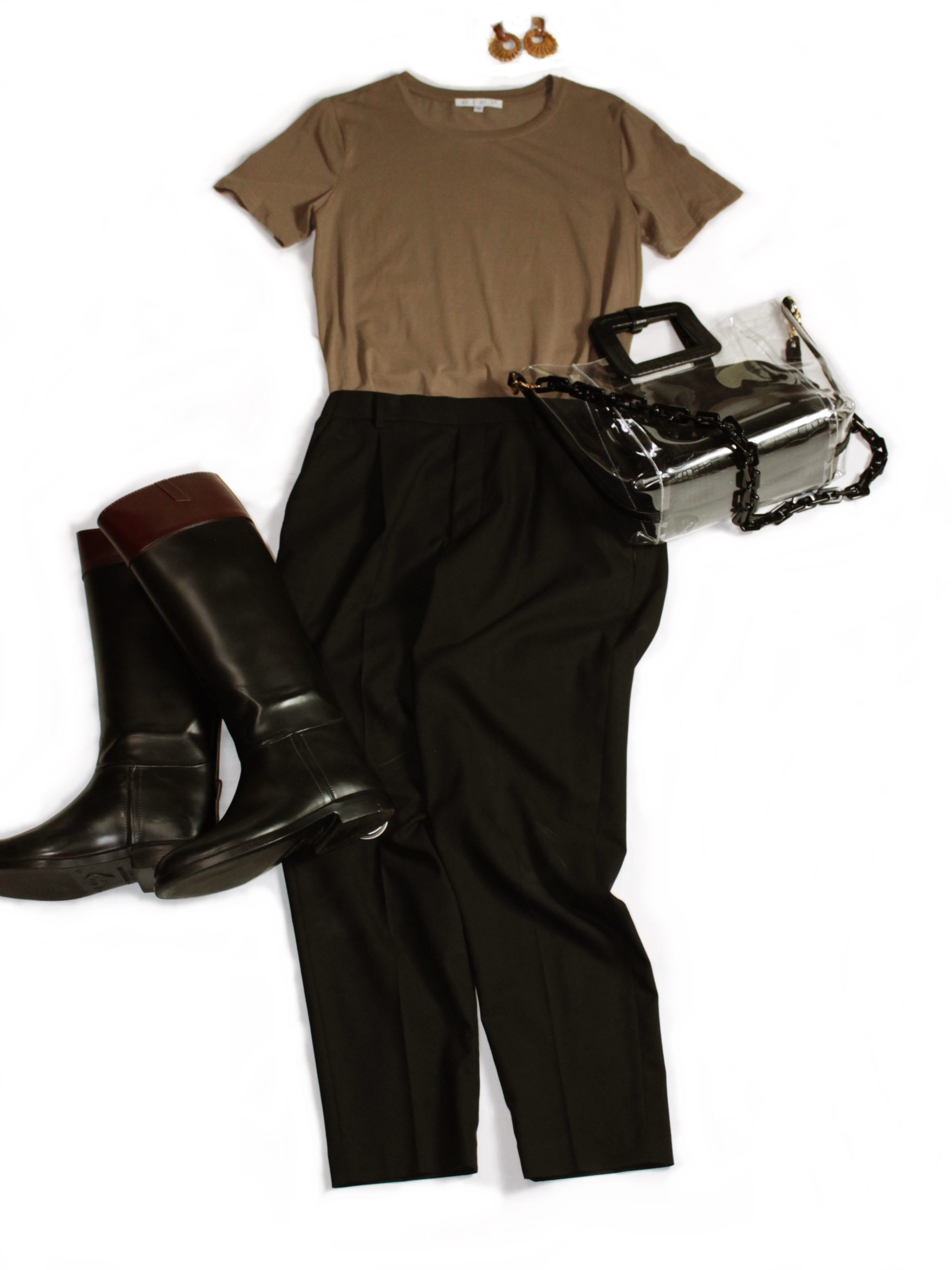 シンプルを目指すあまり、Tシャツ+ボトムスで完結させてしまって、ついつい“ほっこり感”が出てしまうのです。