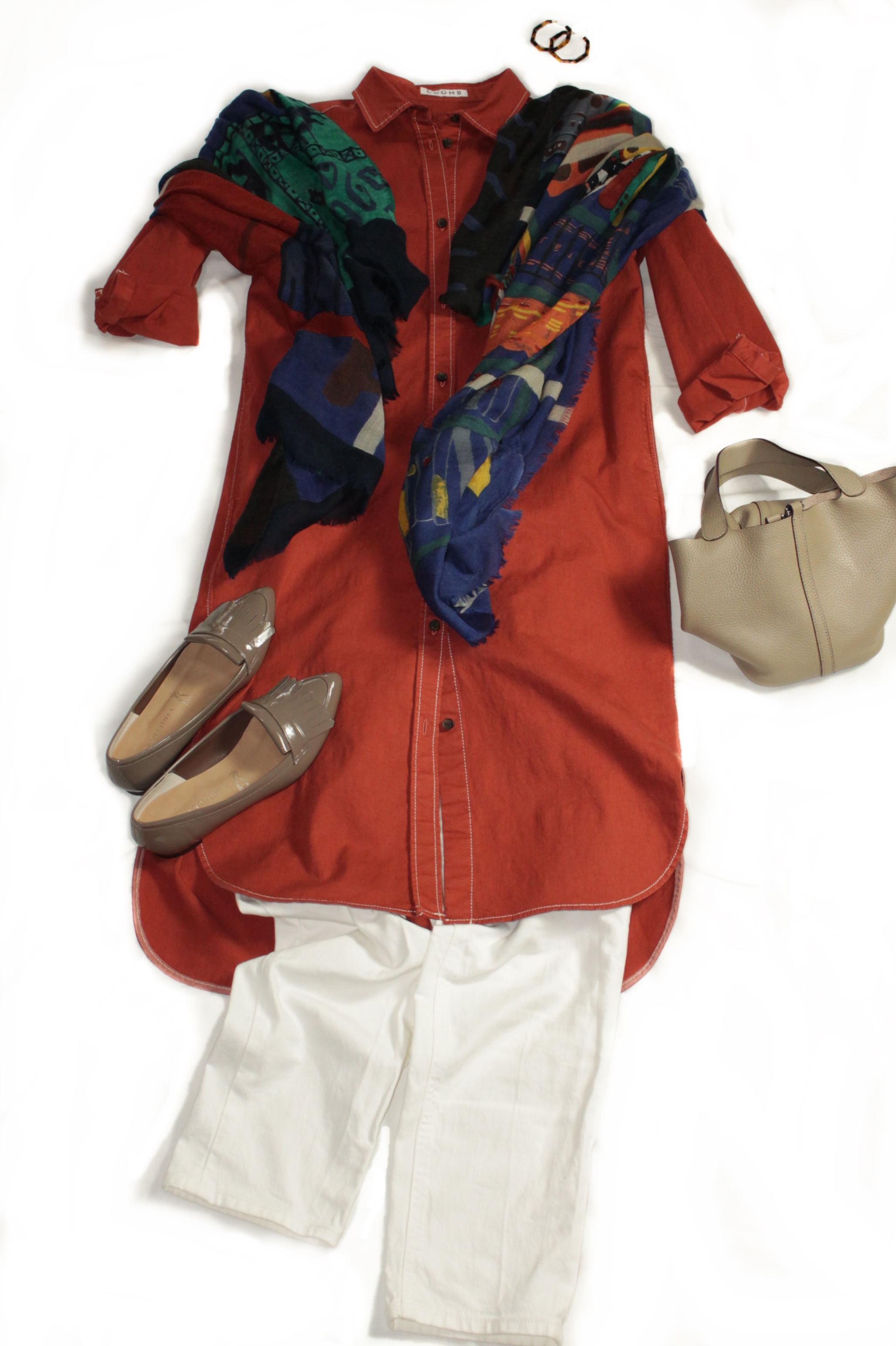 というわけで、今回はシャツワンピをスカート代わりにしたコーディネートです。