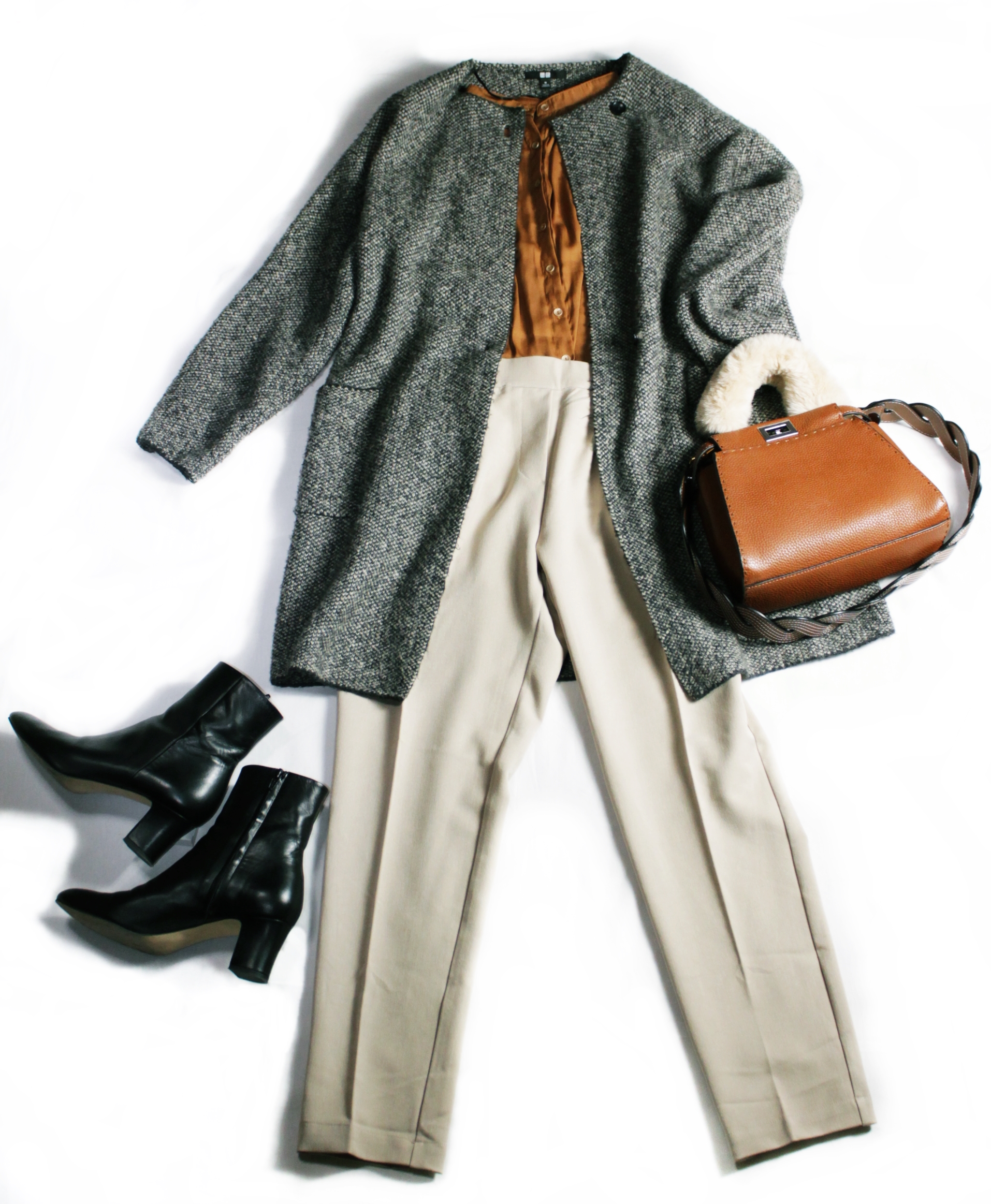 バッグは悩みましたが、茶系のピーカーブー風を。