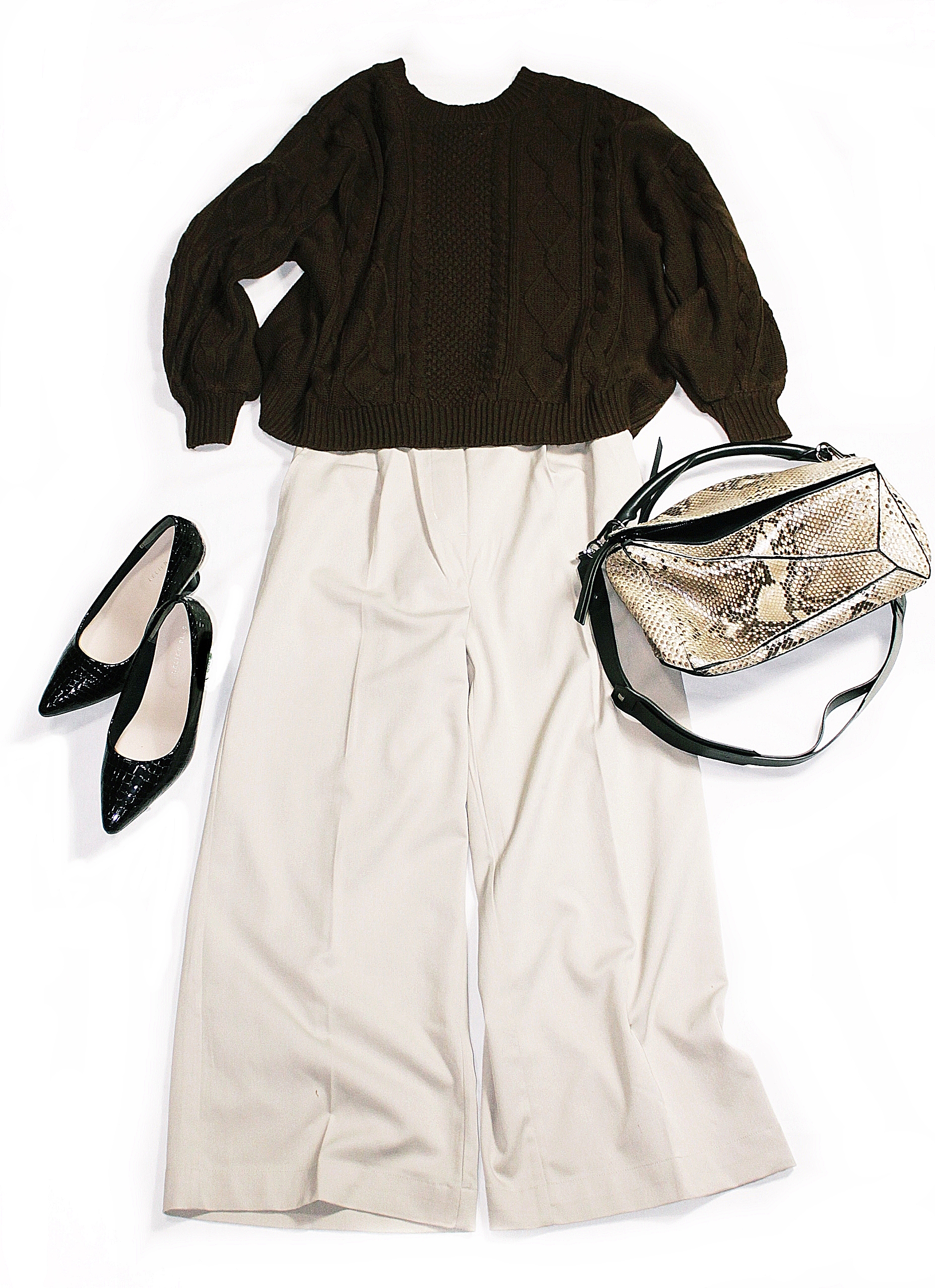 ケーブルニットはそうでないスカートに比べて若干カジュアルで若干キュートで、記事もやわらかいことから優しい印象を与えるアイテムです。