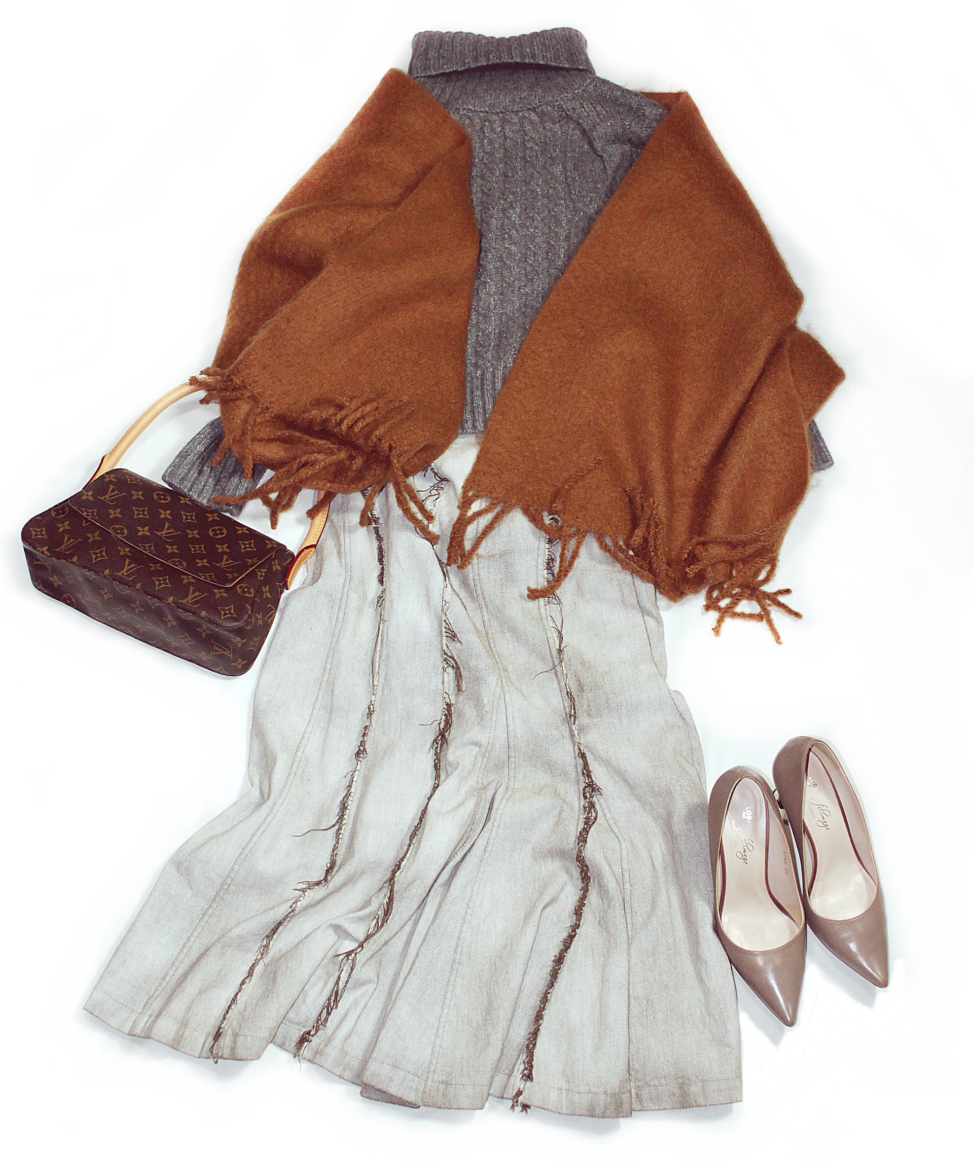 とりあえず、スカート→GUやUNIQLOなどの白デニムに、コート&ブーツ&バッグ→楽天などで販売中のプチプラアイテムに変更してみても、だいたい同じコーデになると思います。